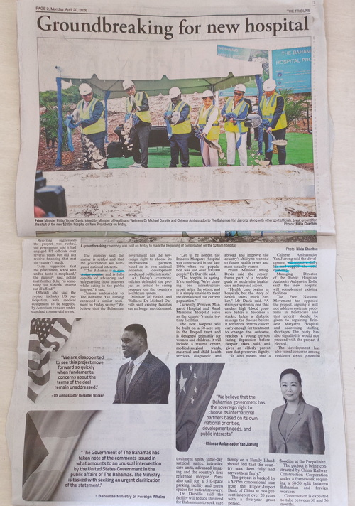 美国驻巴使馆于4月19日发表声明质疑项目融资决定,巴外交部旋即发表声明予以反驳。驻巴哈马使馆有力反击美,强调巴有权自主选择合作伙伴,该民生项目历经中巴双方严肃专业的法律、技术和财务审核,不应受第三方干扰。