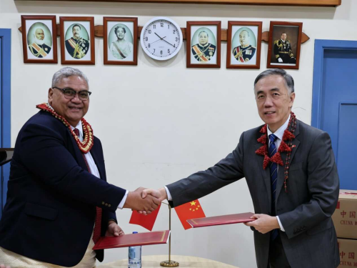 2026年4月20日,驻汤加大使刘为民和汤加代理卫生大臣塞文蒂尼·托乌莫乌阿出席中方向汤方捐赠医疗物资交接仪式,双方签署了交接证书。